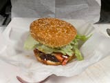 Large 1/3 Angus burger with blend of mozzarella cheese, provolone & cheddar cheeses, topped with jalapeno peppers, red onions, lettuce & our own Southwest ranch sauce.